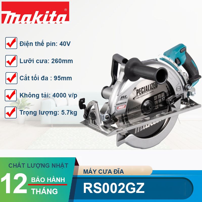 Tại D.I.Y.Home.Depot, chúng tôi thấu hiểu rằng một chiếc máy tốt sẽ giúp người thợ khẳng định tay nghề và uy tín. Vì vậy, sản phẩm Máy cưa đĩa dùng pin 40V Makita RS002GZ tại hệ thống của chúng tôi luôn được đảm bảo là hàng chính hãng, đi kèm lưỡi cưa Efficut 260mm cao cấp để tối ưu hóa tốc độ cắt và tiết kiệm pin.