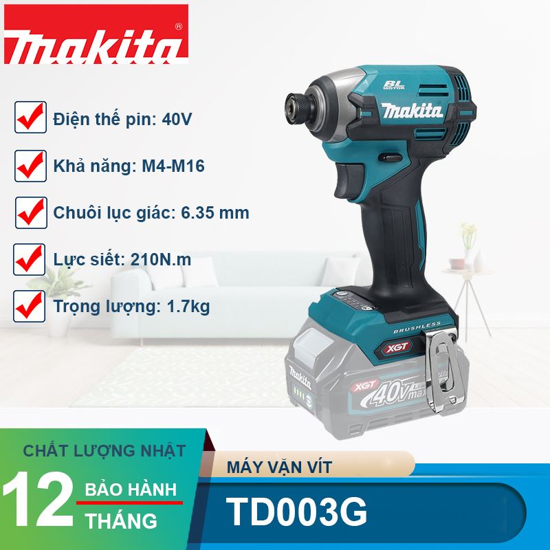 Tại D.I.Y.Home.Depot, chúng tôi thấu hiểu rằng một chiếc máy tốt là khoản đầu tư sinh lời cho người thợ. Sản phẩm Máy vặn vít dùng pin 40V Makita TD003GA201/TD003GZ được phân phối chính hãng với hai tùy chọn: bộ đầy đủ (TD003GA201) kèm 2 pin 2.0Ah cho khả năng làm việc liên tục, hoặc thân máy rời (TD003GZ) để tối ưu chi phí.