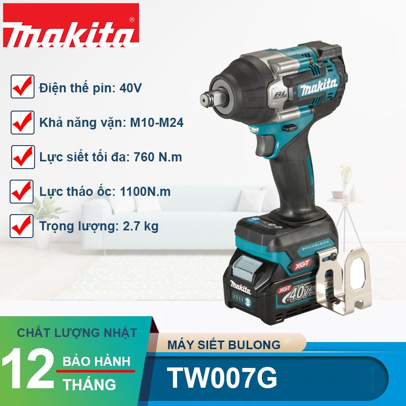Tại D.I.Y.Home.Depot, chúng tôi luôn sẵn sàng cung cấp giải pháp công cụ tối ưu nhất cho bạn. Sản phẩm Máy siết bu lông dùng pin 40V Makita TW007GD202/TW007GZ02 được phân phối chính hãng với hai tùy chọn: bộ đầy đủ kèm 2 pin 2.5Ah và sạc nhanh (TW007GD202) đựng trong thùng Makpac sang trọng, hoặc thân máy lẻ (TW007GZ02) cho những ai đã có sẵn pin sạc 40V.