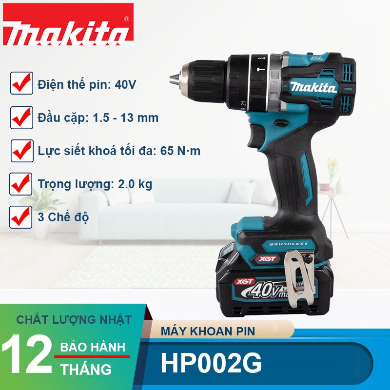 Nếu bạn đang băn khoăn máy khoan pin loại nào tốt để đầu tư dài hạn, HP002G chính là câu trả lời. Hệ sinh thái pin XGT 40V không chỉ cung cấp nguồn năng lượng dồi dào mà còn có độ bền cơ học cao, chịu được va đập và bảo vệ mạch điện thông minh, giúp thiết bị của bạn luôn bền bỉ theo năm tháng.