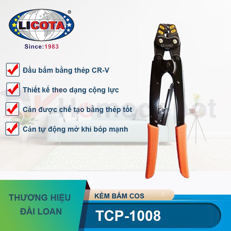 Trong thi công hệ thống điện, việc bấm đầu cos (cote) chắc chắn là yếu tố then chốt để đảm bảo an toàn, tránh tình trạng lỏng lẻo gây phóng điện hay chập cháy. Kìm bấm cos Licota TCP-1008 với thiết kế cộng lực thông minh và lưỡi bấm từ thép CR-V siêu cứng đã trở thành người bạn đồng hành tin cậy của các thợ điện từ hệ thống dân dụng đến điện công nghiệp nặng.