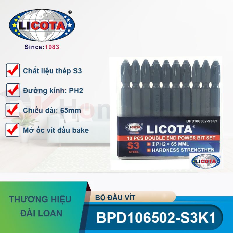 Sản phẩm có xuất xứ Đài Loan, đảm bảo các quy chuẩn kiểm định khắt khe của thương hiệu Licota toàn cầu. Sở hữu Bộ mũi vít bake 2 đầu 10 chi tiết Licota BPD106502-S3K1, bạn sẽ hoàn toàn yên tâm về chất lượng đường vặn, giúp nâng tầm tính chuyên nghiệp cho mọi công trình.