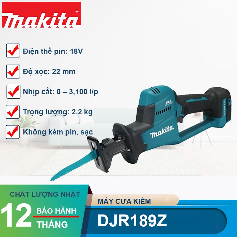 Mã sản phẩm Máy cưa kiếm dùng pin 18V Makita DJR189Z (ký tự Z ở cuối) đại diện cho phiên bản thân máy đơn lẻ, chưa bao gồm pin và sạc. Đây là giải pháp mua sắm thông minh cho những ai đã sẵn có pin 18V LXT. Khi mua máy, bạn vẫn sẽ nhận được bộ phụ kiện đầy đủ gồm: lưỡi cưa kim loại, lưỡi cưa ván ép và lưỡi cưa gỗ để bắt đầu công việc ngay lập tức.