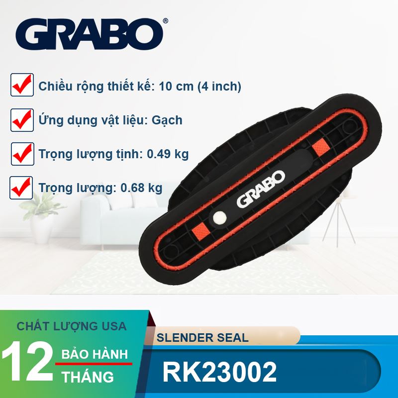 Trong thi công ốp lát và nội thất chuyên nghiệp, không phải lúc nào chúng ta cũng làm việc với những tấm đá hay kính khổ lớn. Những thanh ván sàn mỏng, gạch thẻ trang trí hay thậm chí là các đường ống hình trụ luôn là thách thức đối với các loại giác hút thông thường. Slender seal Grabo RK23002 ra đời để chinh phục những bề mặt đặc thù đó, giúp người thợ thao tác chính xác và an toàn tuyệt đối.