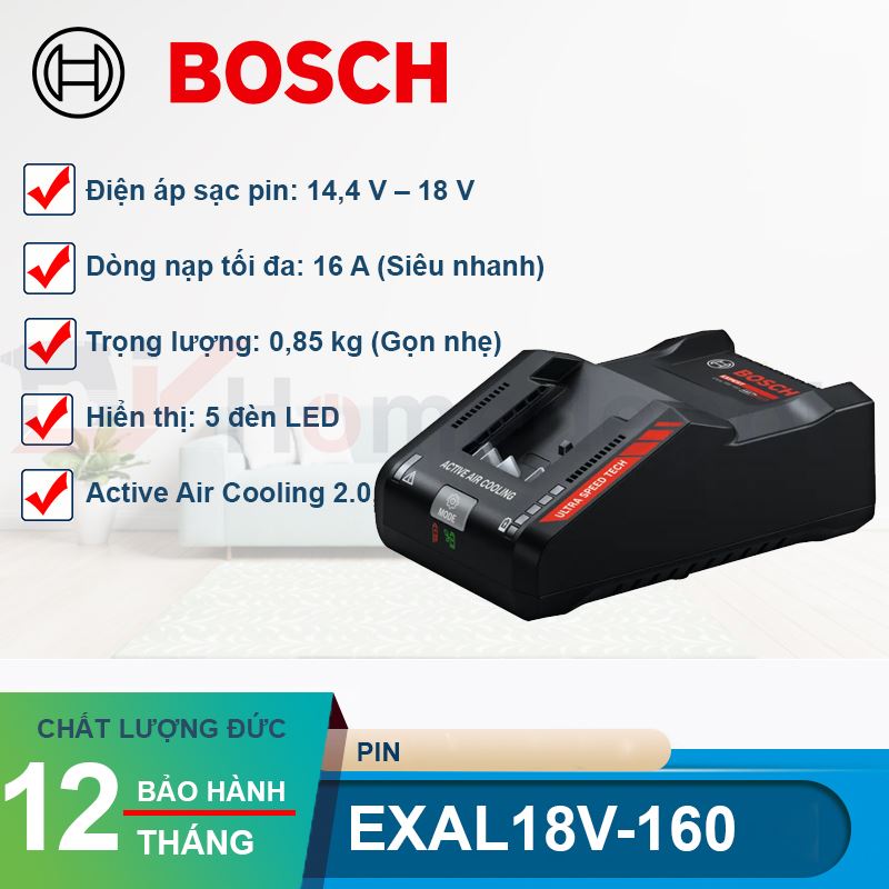 Nếu bạn đang sở hữu những dòng máy công suất lớn và pin Bosch ProCORE18V hoặc Expert, thì Bộ sạc nhanh Bosch EXAL18V-160 là mảnh ghép cuối cùng hoàn thiện bộ đồ nghề chuyên nghiệp. Tốc độ sạc kinh ngạc đi kèm các tính năng bảo vệ thông minh sẽ giúp bạn làm việc không ngừng nghỉ và kéo dài tuổi thọ cho những viên pin đắt giá.