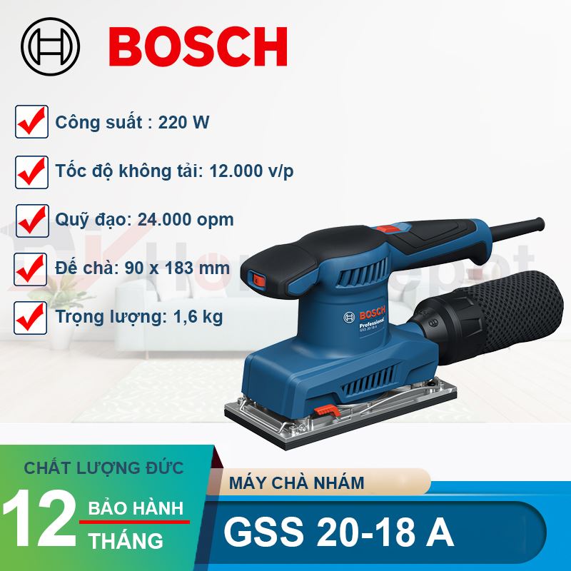 Bạn đang cần một chiếc máy chà nhám rung chữ nhật vừa khỏe vừa sạch bụi cho xưởng mộc của mình? Hãy liên hệ ngay với DIYhomedepot để sở hữu Bosch GSS 20-18 A chính hãng với giá tốt nhất nhé!