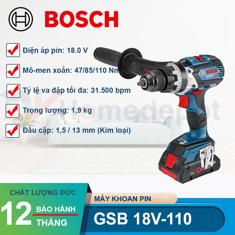 Bạn đang cần một chiếc máy khoan pin mạnh mẽ nhất để chinh phục các dự án xây dựng hạng nặng? Hãy liên hệ ngay với DIYhomedepot để sở hữu Bosch GSB 18V-110 chính hãng với mức giá ưu đãi nhất nhé!