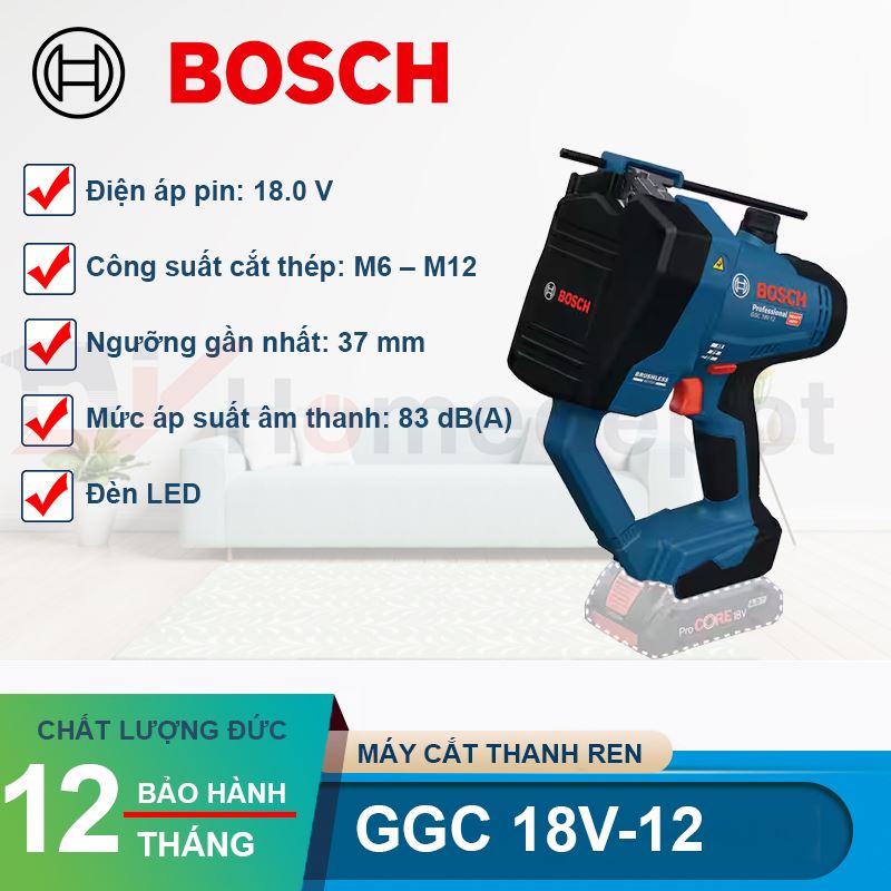 Bạn đang tìm kiếm một chiếc máy cắt ty ren pin 18V chuyên nghiệp để đẩy nhanh tiến độ lắp đặt hệ thống treo? Hãy liên hệ ngay với DIYhomedepot để sở hữu Bosch GGC 18V-12 (Solo) chính hãng với mức giá ưu đãi nhất nhé!
