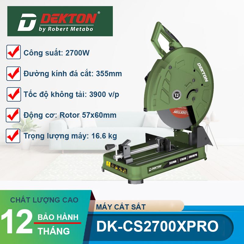 Máy cắt sắt Dekton DK-CS2700XPRO là sự hội tụ của sức mạnh (2700W), sự ổn định (16.6kg) và tính kinh tế (Eto phụ). Nếu bạn cần một chiếc máy cắt sắt bàn hoàn hảo nhất để tối ưu hóa lợi nhuận và hiệu suất công việc, thì DK-CS2700XPRO chính là sự lựa chọn số 1.