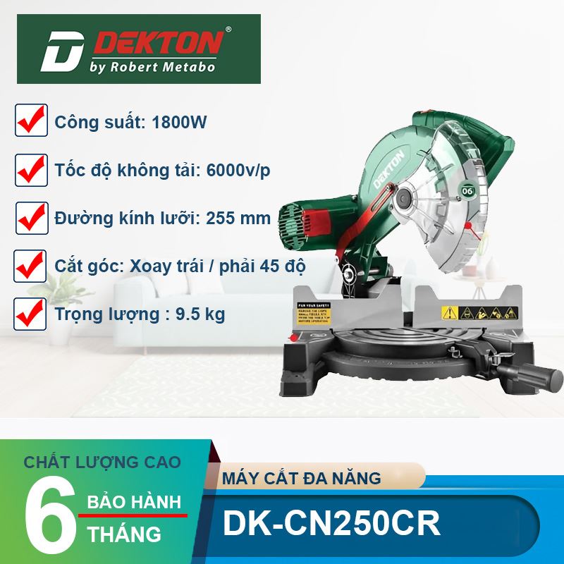 Bạn đang tìm kiếm một chiếc máy cắt nhôm kính và gỗ có độ ổn định cao, vận hành êm ái để làm việc tại các khu dân cư hoặc xưởng nội thất? Máy cắt nhôm Dekton DK-CN250CR sử dụng hệ thống truyền động dây Curoa chính là giải pháp tối ưu. Với công suất mạnh mẽ 1800W và thiết kế khung máy chắc chắn, đây là trợ thủ đắc lực giúp bạn tạo ra những đường cắt mịn màng và chuẩn xác nhất.