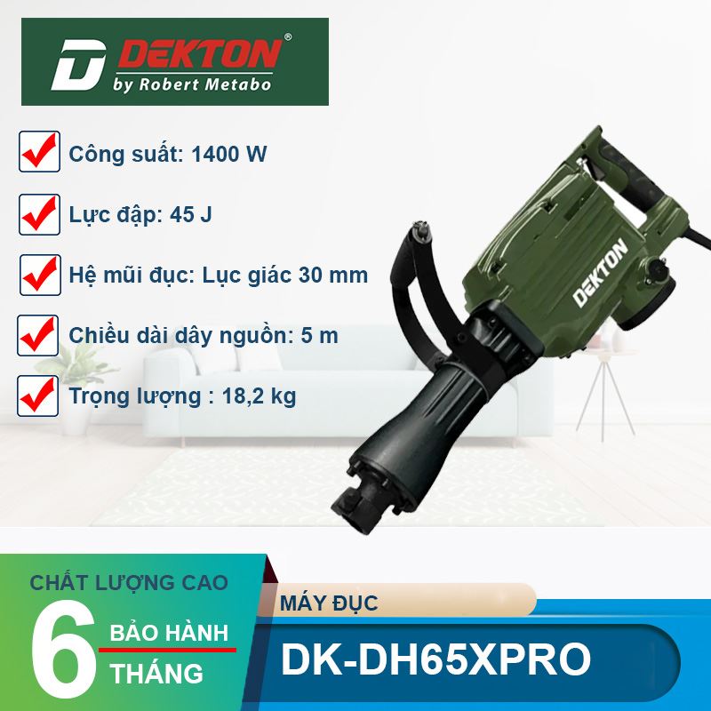 Máy đục bê tông Dekton DK-DH65XPRO không chỉ là một chiếc máy, nó là sự khẳng định về sức mạnh phá dỡ đỉnh cao. Nếu bạn cần lực đập 45J uy lực, hệ mũi 30mm chắc chắn và màu Olive đẳng cấp, thì phiên bản XPRO này chính là sự đầu tư xứng đáng nhất để chinh phục mọi tiến độ thi công.