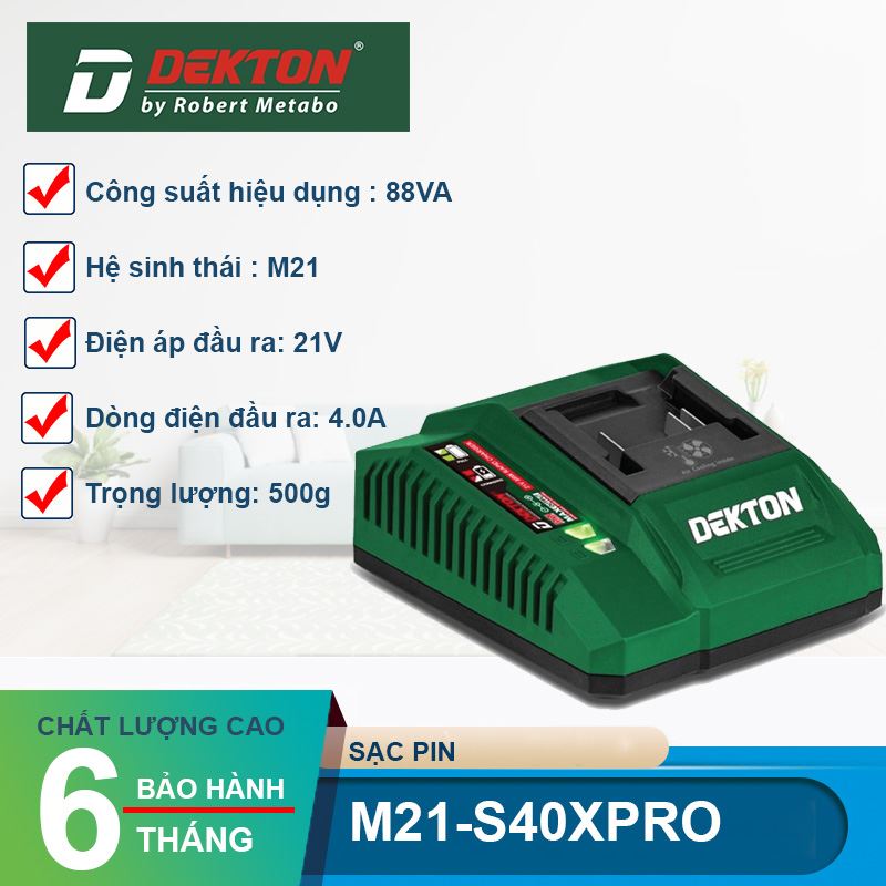 Sạc 21V Dekton M21-S40PRO là minh chứng cho sự đột phá về công nghệ nạp năng lượng của Dekton. Nếu bạn cần tốc độ, sự an toàn và tính cơ động thì dòng sạc 4.0A này chính là sự đầu tư xứng đáng nhất để tối ưu hóa bộ dụng cụ pin của mình.